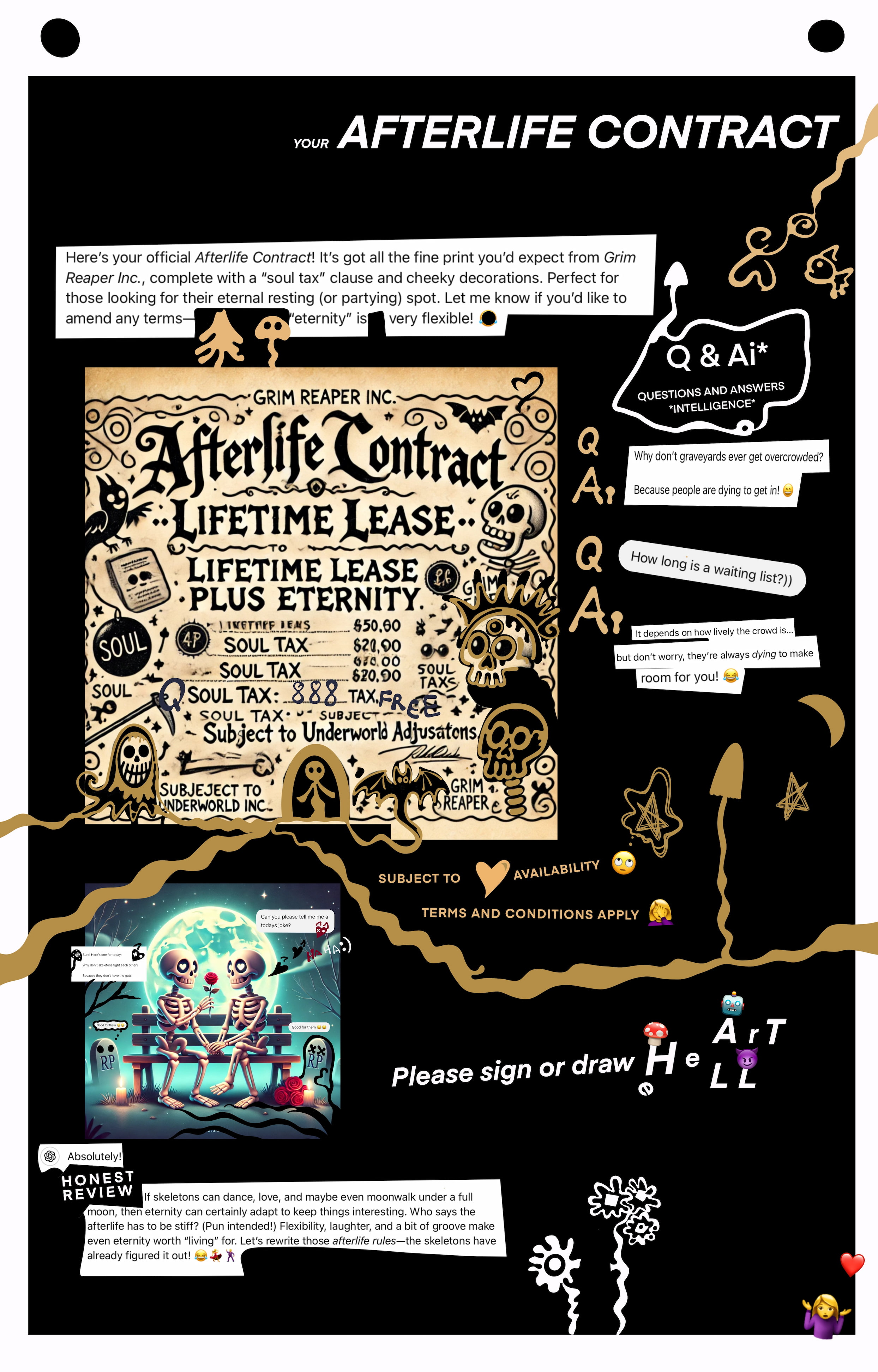 collectible stickers, reusable coffee bags, future folklore, holographic political campaigns, afterlife contracts, guilt-free infinite water rituals, and smart pixels carrying whispered stories.